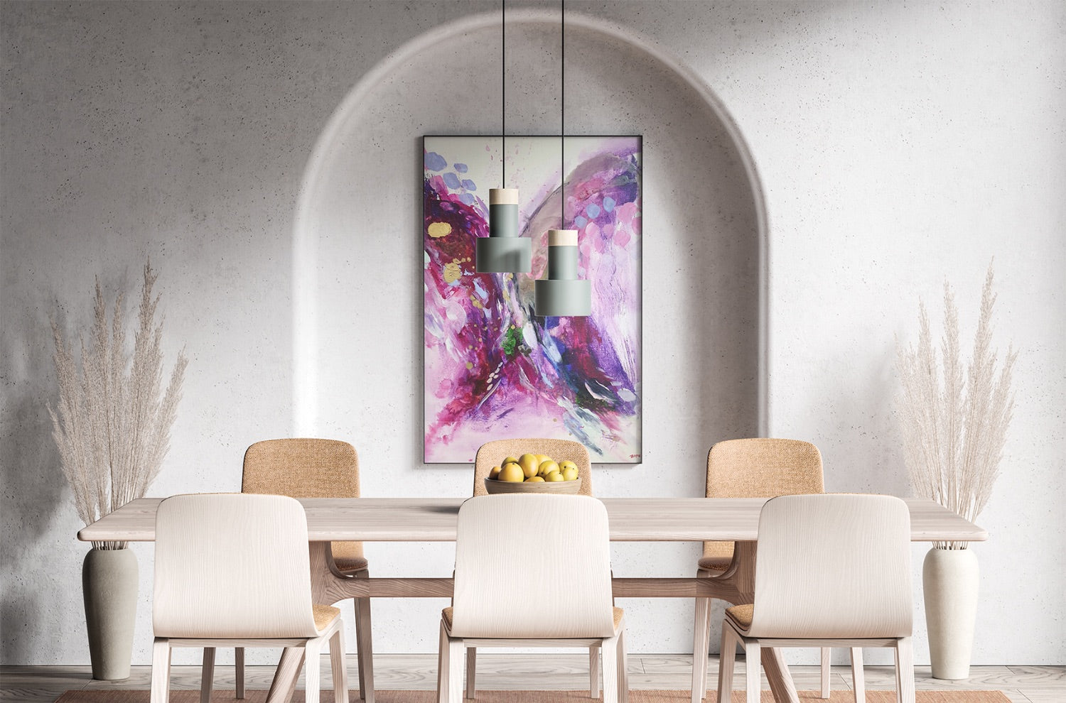 "I'm in love with my new artwork! The bold colours and abstract design are even more stunning in person. It adds a unique, vibrant touch to my dining room."