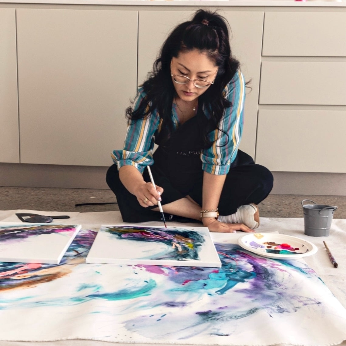 "Hi, I'm Seoyoung Jo, aka Fat Thumbs. I admire vibrant colors, abstract artwork, animal illustrations, botanical paintings, and portraiture. Creating art is a soulful and heartfelt experience for me, as I cherish connecting with people through my work."