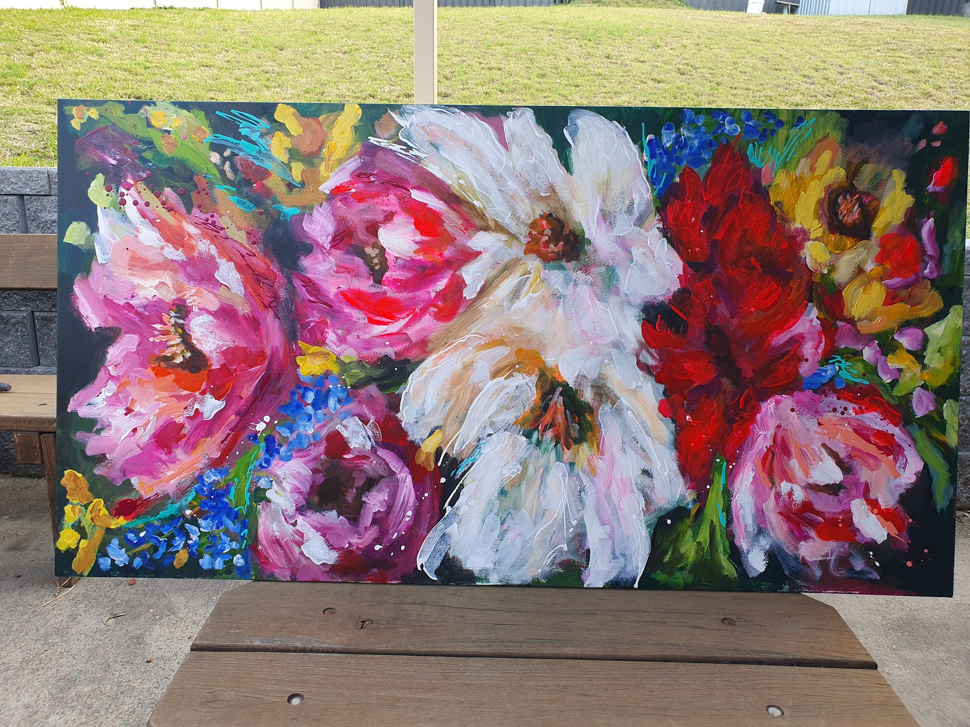 This joyful explosion of colour is my latest floral piece – a celebration of nature’s energy, movement, and wild beauty. Each petal painted with passion, each stroke full of life