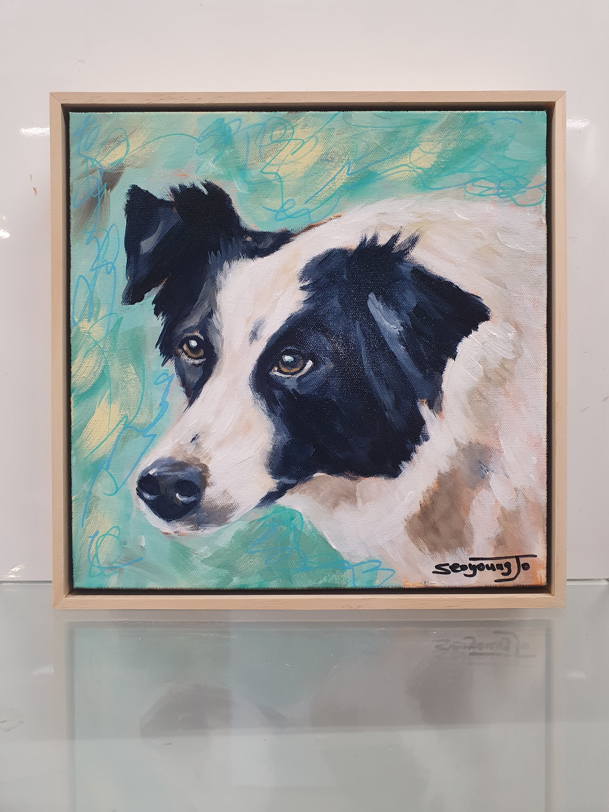 12×12"(30×30cm) acrylic mixed media with natural wood frame